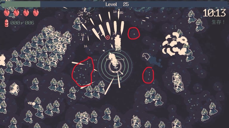 20 Minutes Till Dawn wants you do dodge enemies as much as you can. So, health is hit based as opposed to damage tick over time like in Vampire Survivors. I like this element because I feel like its emphasis’s skill more.