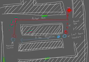 The last sense Faust uses is the prediction sense, designed to make the AI appear more intelligent during pursuits. When Faust loses visual contact with the player, this system calculates the player’s last seen position, direction, and speed, and then projects a point five seconds ahead.