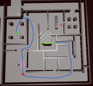 The second issue was the map's compactness. The tight cover and narrow spaces blocked too much of Faust’s line of sight, reducing its ability to track and pursue the player effectively. When the map was opened up and the cover spaced out, the encounters became more dynamic and believable, allowing Faust to behave in a way that supported the horror design.