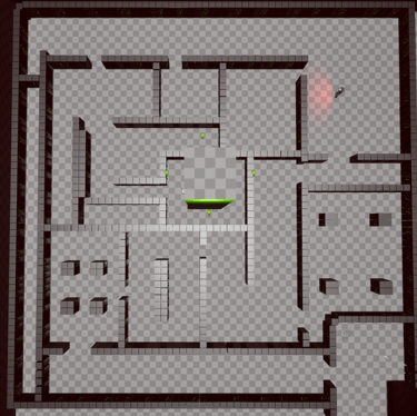 Despite these changes, there was still a major flaw in this map design that would have affected the previous map as well. The flaw is that there are multiple paths to the objective. During playtesting, players would see FAUST-9 and just turn around to take another route. I attempted to fix this through FAUST-9’s search behavior, but in the end, the best solution was to make the map linear. This forces the player to confront FAUST-9 rather than bypassing it.