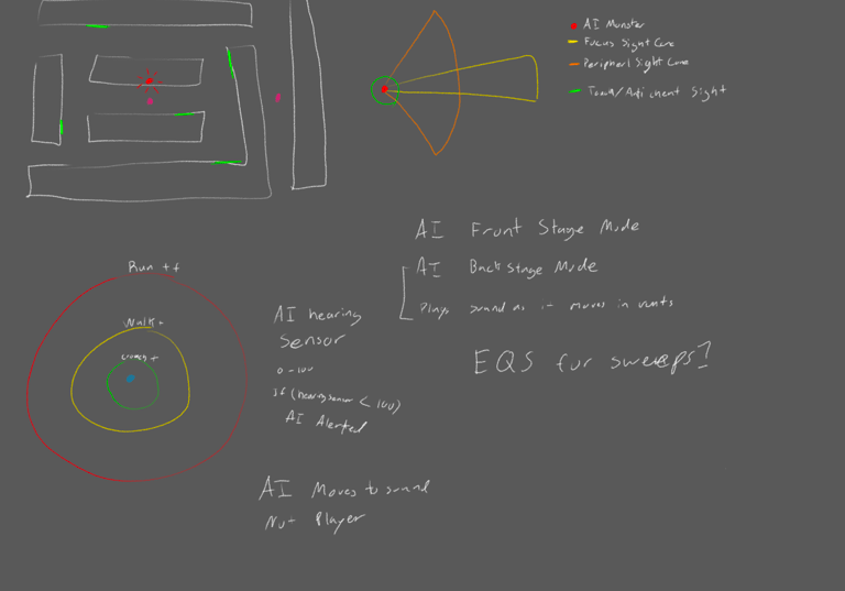 The overall goal was to create a smart AI monster using the inspirations mentioned above. The first step was to break down the design elements that made the Alien’s AI in Alien: Isolation so effective.